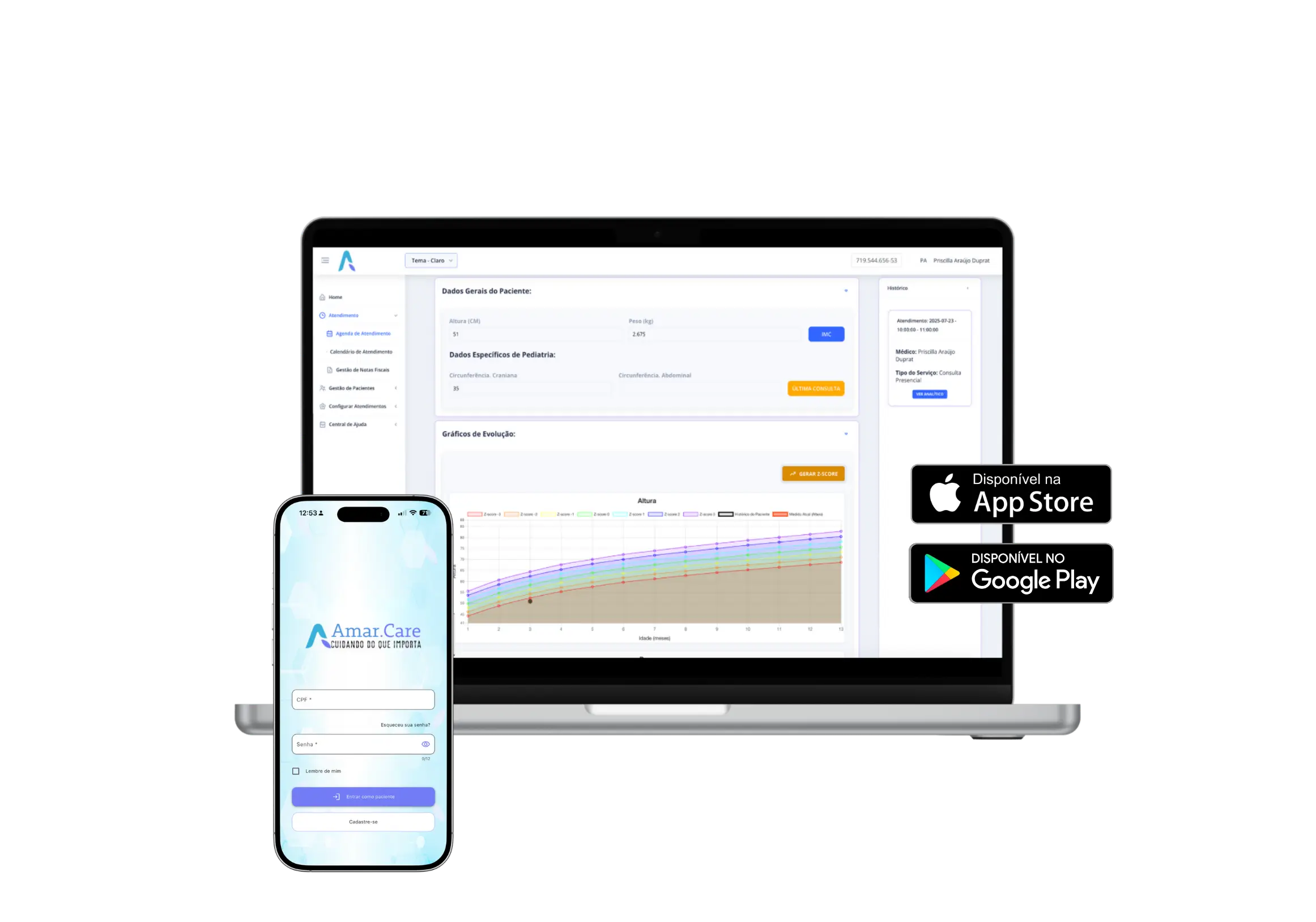 Do consultório ao celular dos pais, a Amar.Care entrega uma experiência contínua e eficiente.